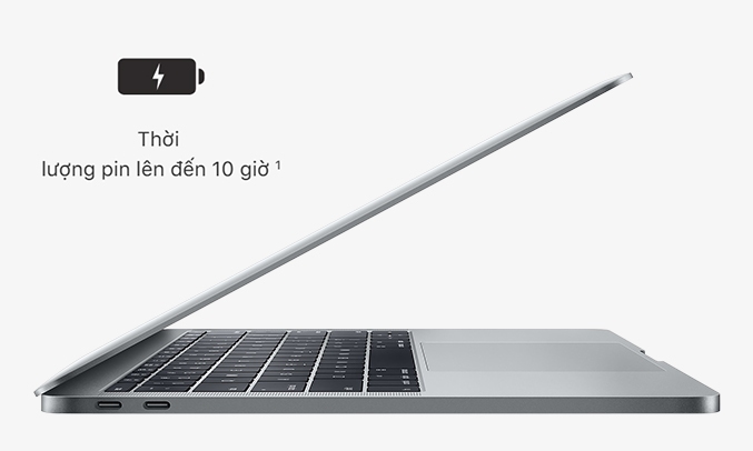 Macbook được trang bị pin Lithium-polymer có thời lượng sử dụng lên đến 10 tiếng trong một lần sạc đầy.