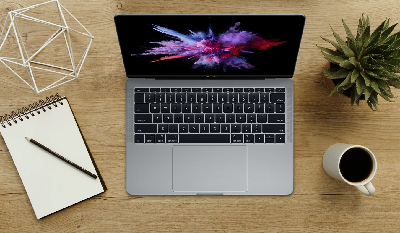 Macbook Pro 13.3 inch 256GB 2017 (MPXT2SA/A) vỏ ngoài bằng kim loại nhôm nguyên khối màu bạc cùng logo trái táo phiên bản mới mang lại sự kiêu hãnh cho người sở hữu nó.