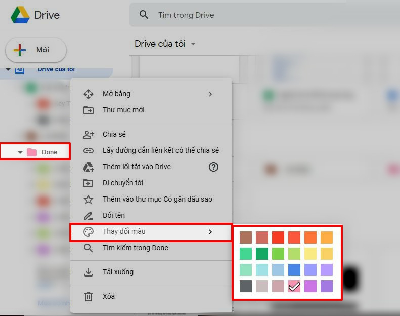Nếu bạn cần một thứ nổi bậc, nhìn vào thấy ngay thì màu sắc chính là thứ bạn cần. Google Drive cho phép bạn điều chỉnh màu cho từng thư mục bằng cách nhấp phải chuột vào folder > chọn Change Color (Thay đổi màu).