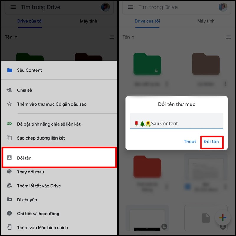 Để đổi tên cho thư mục bạn nhấp chuột phải vào thư mục rồi chọn đổi tên. Nếu bạn thao tác trên điện thoại thì bạn có thể nhấn vào nút ba chấm ngay bên tên thư mục và chọn đổi tên.