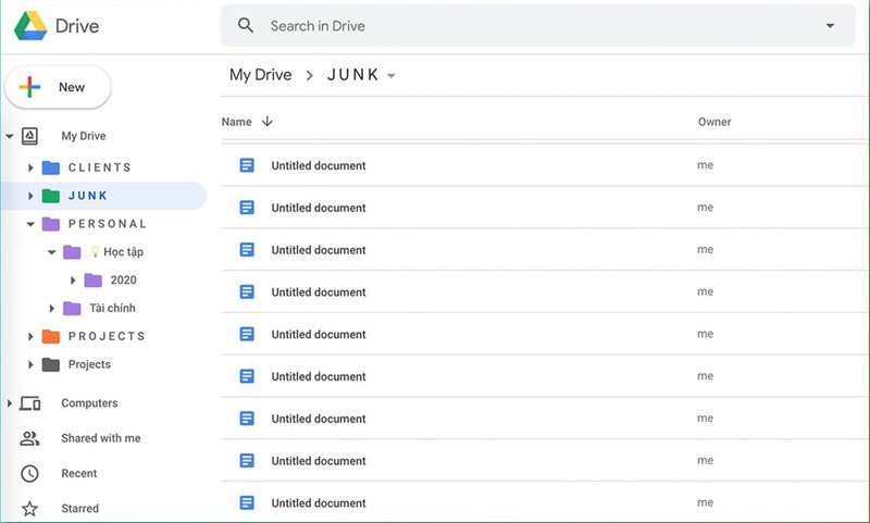 Việc có một thư mục rác, chứa những file lộn xộn bạn tạo ra trong lúc làm việc sử dụng ứng dụng là điều vô cùng cần thiết. Bạn có thể tùy tiện tạo file mới trong thư mục này, tùy tiện đặt đại một cái tên nào đó và để chúng trong đây. Sau khi hoàn tất công việc bạn có thể đối tên file và cho nó vào mục bạn đã phân loại hoặc nếu file này không hữu ích bạn cũng có thể tiện tay xóa mà không cần sợ xóa nhầm. Hơn thế nửa việc làm này giúp khu vực My Drive cua bạn ít file rác hơn, tránh lộn xộn giữa các file.